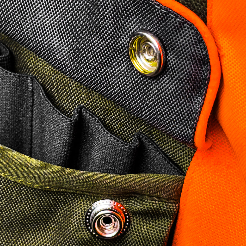 Dotato di inserti ad alta visibilità arancione fluo, garantisce massima sicurezza durante le battute al cinghiale, in squadra o in braccata. Ogni dettaglio è stato studiato per rispondere alle esigenze dei cacciatori più esigenti.